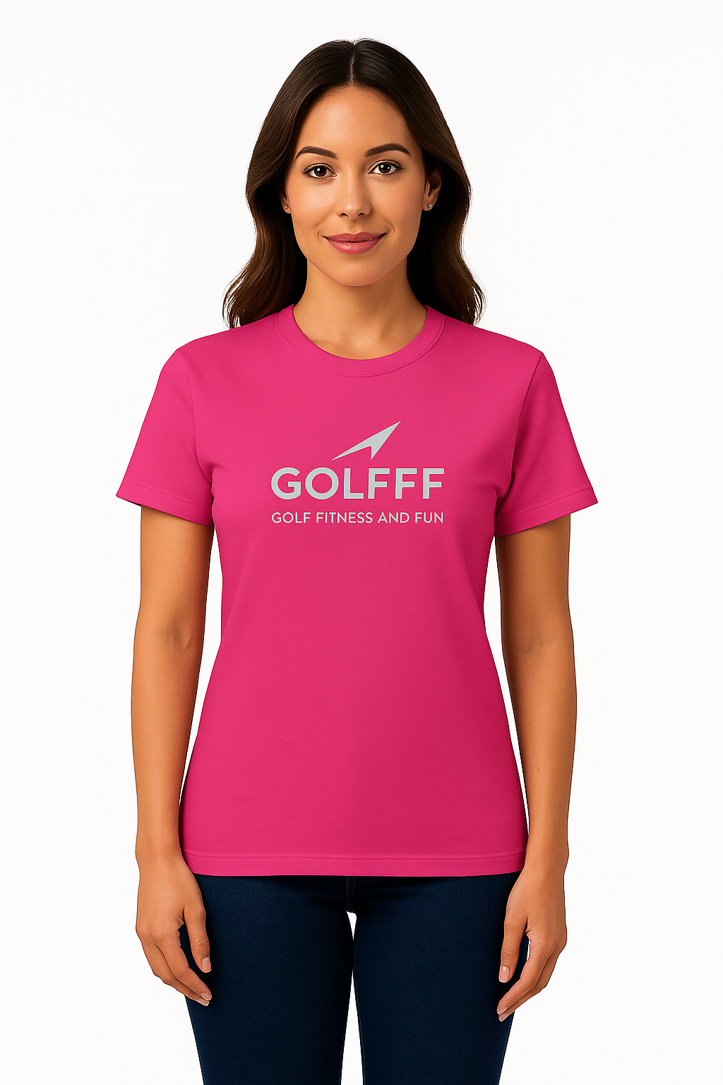 GOLFFF Dames T-Shirt – Donkerroze / Grijs logo